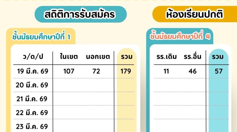 สถิติรับสม้ครนักเรียน ม.1 ม.4 วันที่ 19 มี.ค. 69 March 20, 2026March 21, 2026 webmaster 34 Views รายชื่อนักเรียน ม.1 วันที่ 19 มี.ค. 69 https://shorturl.at/5fLy4 รายชื่อนักเรียน ม.4 วันที่ 19 มี.ค. 69 https://shorturl.at/Nb5CP ข้อมูลโดย…กลุ่มบริหารวิชาการ