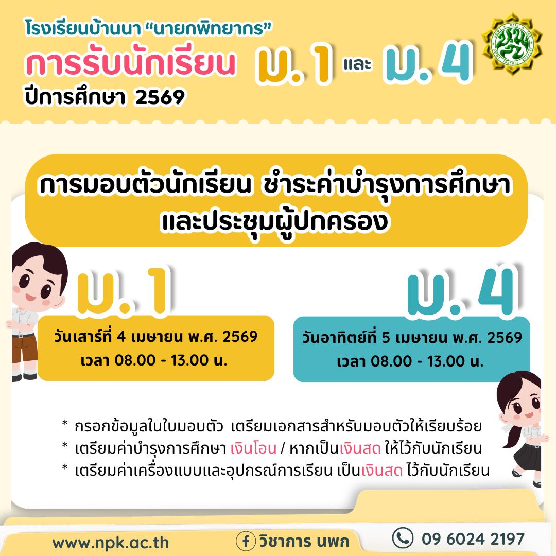 การมอบตัวนักเรียนระดับชั้น ม.1 และ ม.4