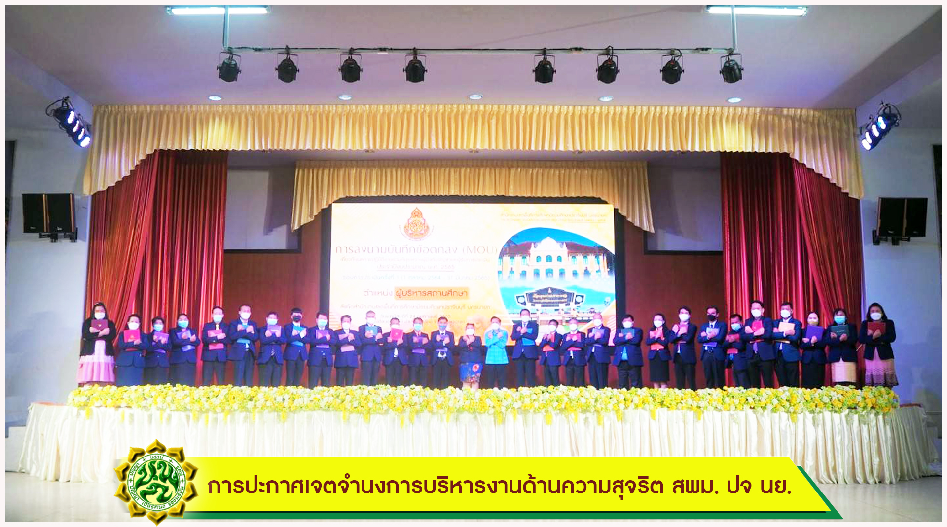 พิธีแสดงเจตจำนงการบริหารงานด้านความสุจริตของคณะผู้บริหาร สพม. ปจ.นย. February 24, 2022March 29, 2022 webmaster 273 Views เมื่อวันพฤหัสบดีที่ 24 กุมภาพันธ์ 2565 ผู้บริหารการศึกษา ผู้อำนวยการสถานศึกษา ผู้อำนวยการกลุ่ม ข้าราชการครูและบุคลากรทางการศึกษาในสังกัดสำนักงานเขตพื้นที่การศึกษามัธยมศึกษาปราจีนบุรี นครนายก ได้ร่วมประกาศแสดงเจตจำนงการบริหารงานด้านความสุจริตและการป้องกันและปราบปรามการทุจริตของหน่วยงาน นำโดยนายวรวิทย์ โสภาพันธ์ ผู้อำนวยการสำนักงานเขตพื้นที่การศึกษามัธยมศึกษาปราจีนบุรี นครนายก ณ โรงเรียนองครักษ์