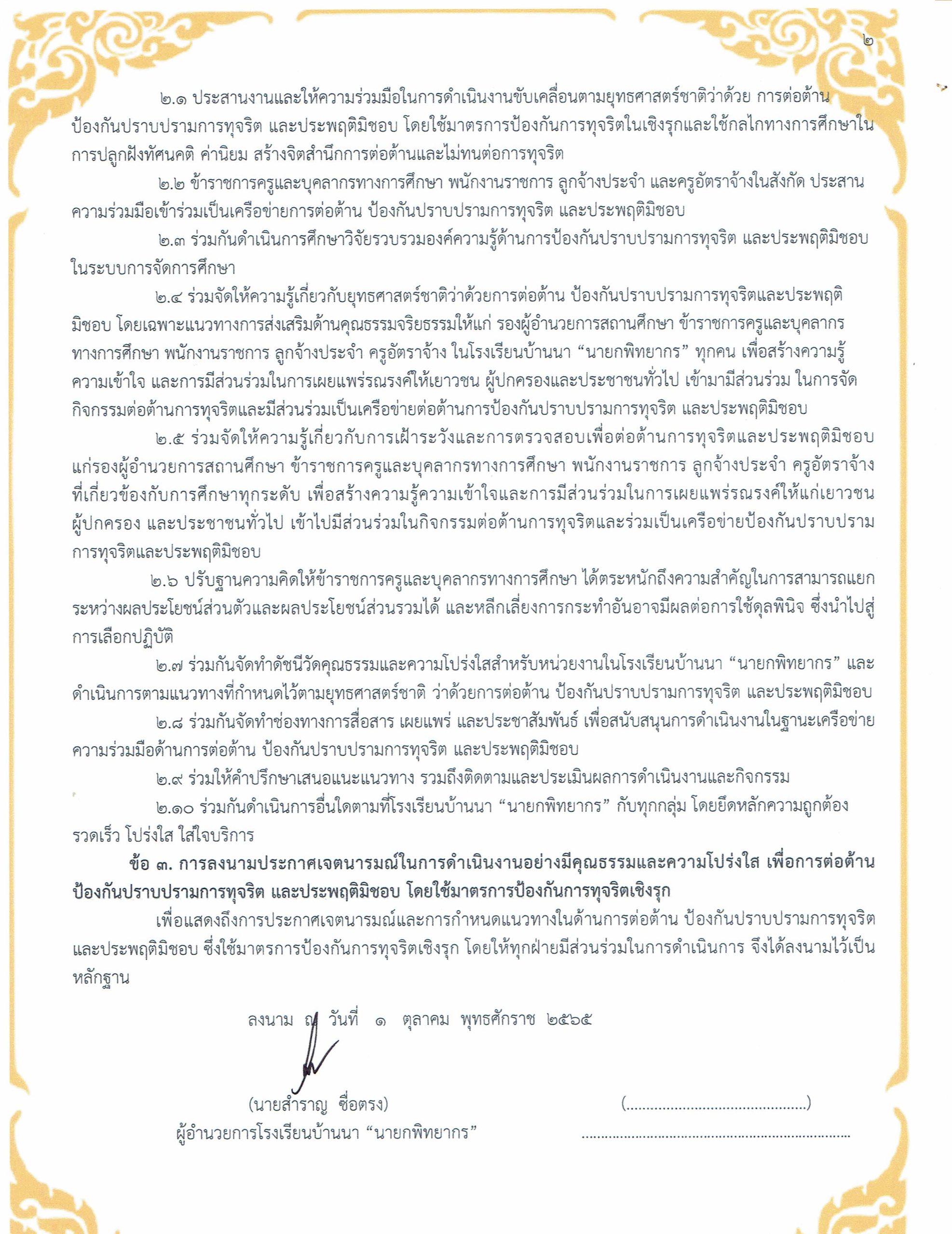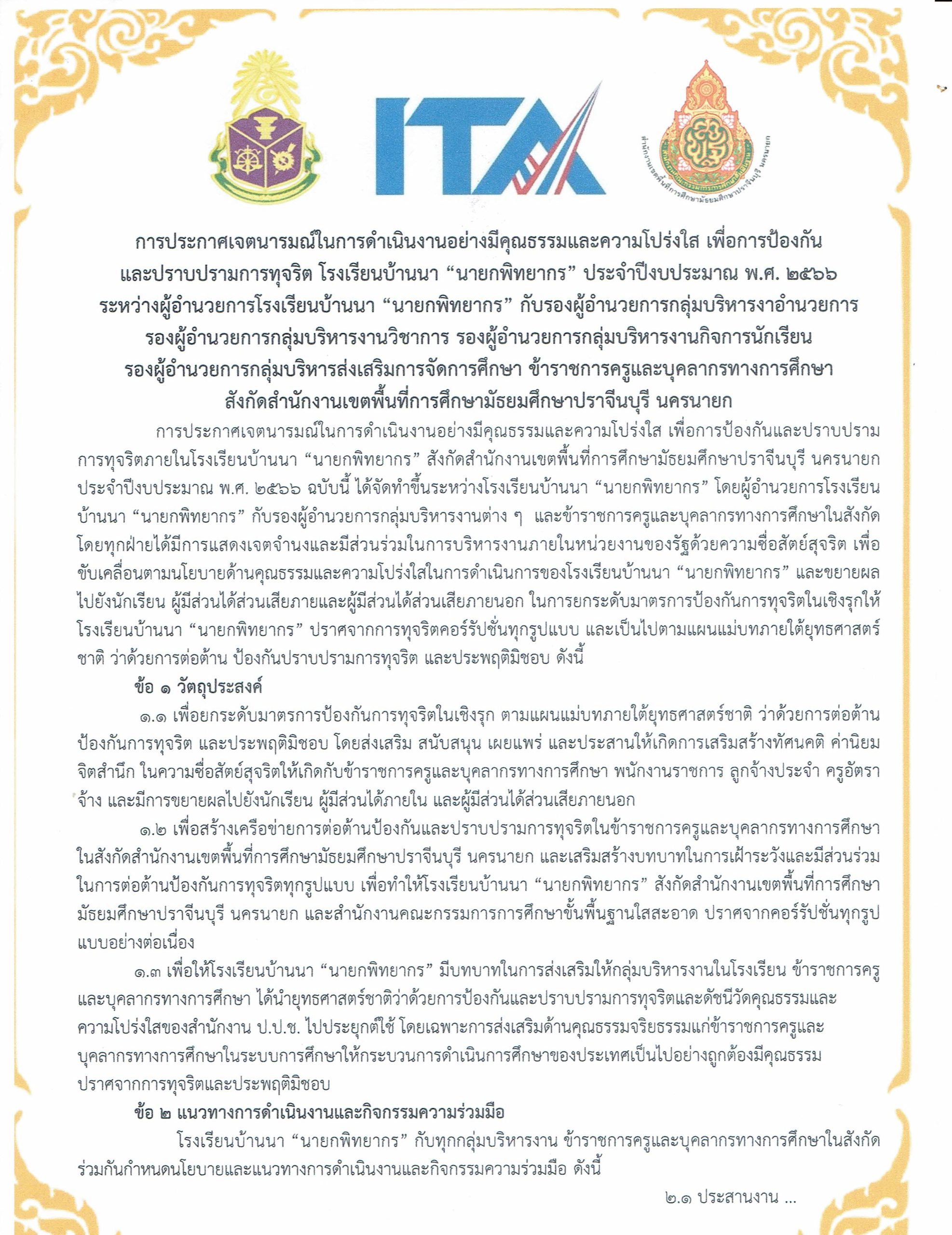 พิธีประกาศเจตนารมณ์ในการดำเนินงานอย่างมีคุณธรรมและความโปร่งใส June 9, 2023August 20, 2023 webmaster 118 Views เมื่อวันศุกร์ที่ 9 มิถุนายน พ.ศ. 2566 คณะผู้บริหารและครูโรงเรียนบ้านนา “นายกพิทยากร” ร่วมจัดกิจกรรมประกาศเจตนารมณ์ในการดำเนินงานอย่างมีคุณธรรมและความโปร่งใส เพื่อป้องกันและปราบปรามการทุจริต ประจำปีงบประมาณ 2566[ภาพโดย…ทีมงานโสตฯ]
